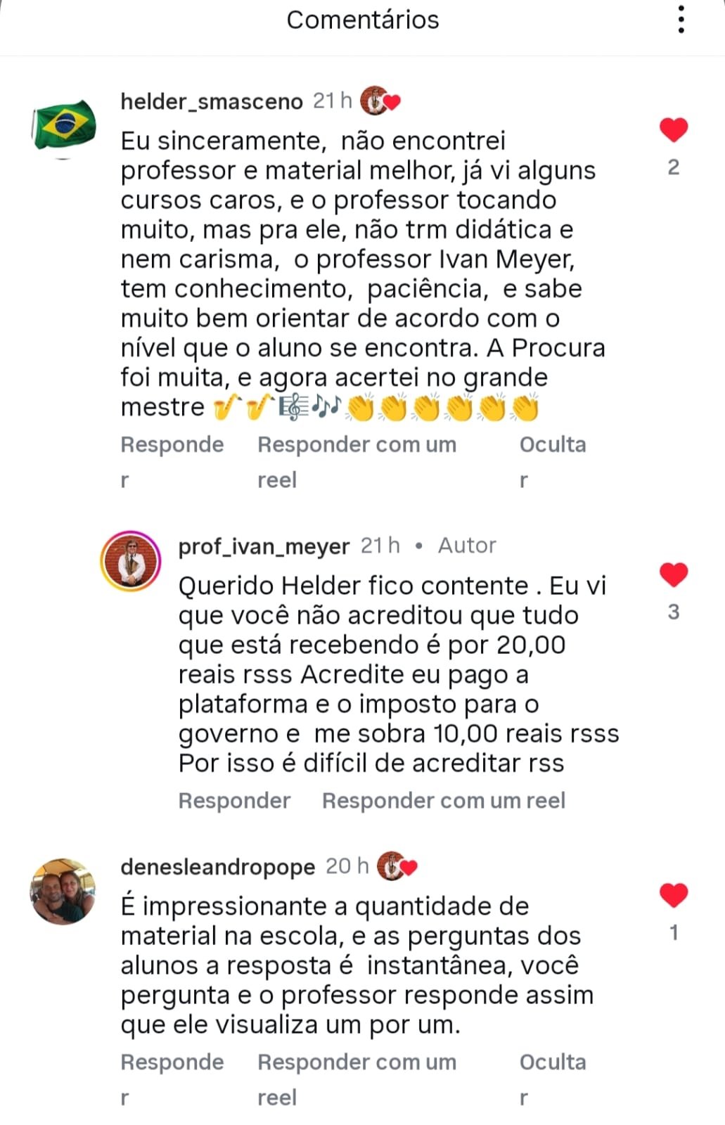 Meu objetivo não é lucrar alto com poucos alunos, mas sim democratizar o Sax no Brasil.