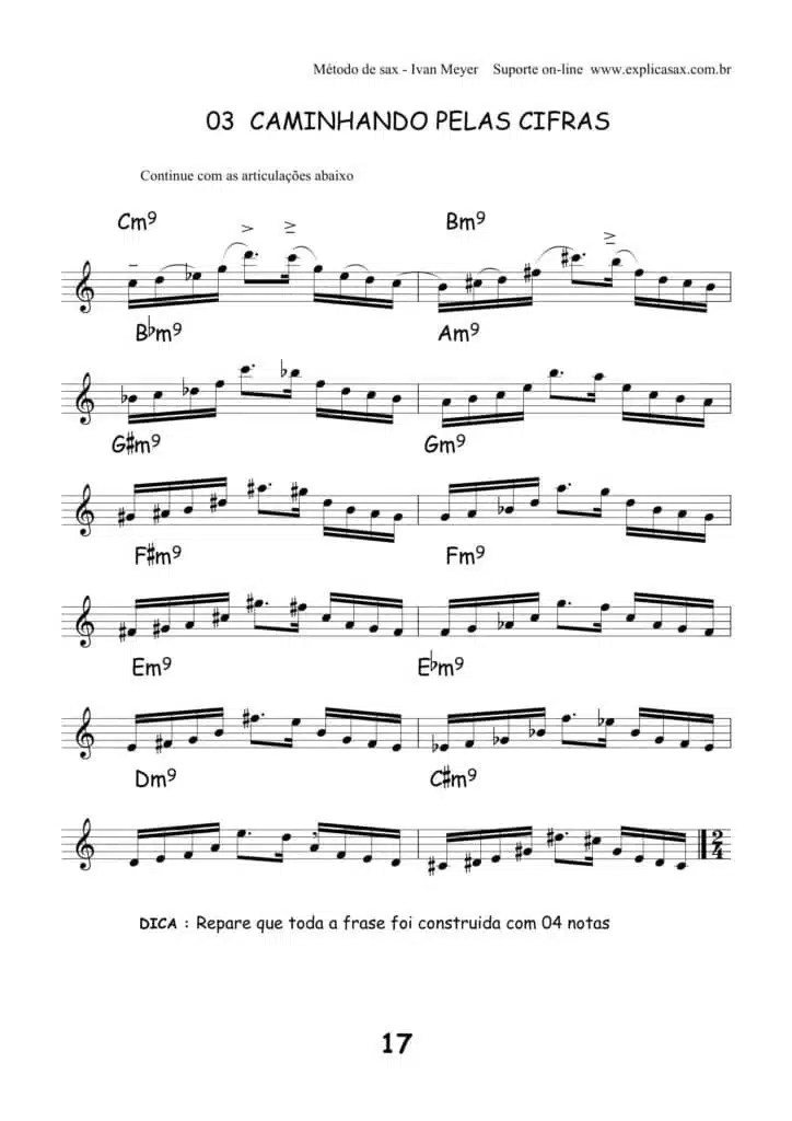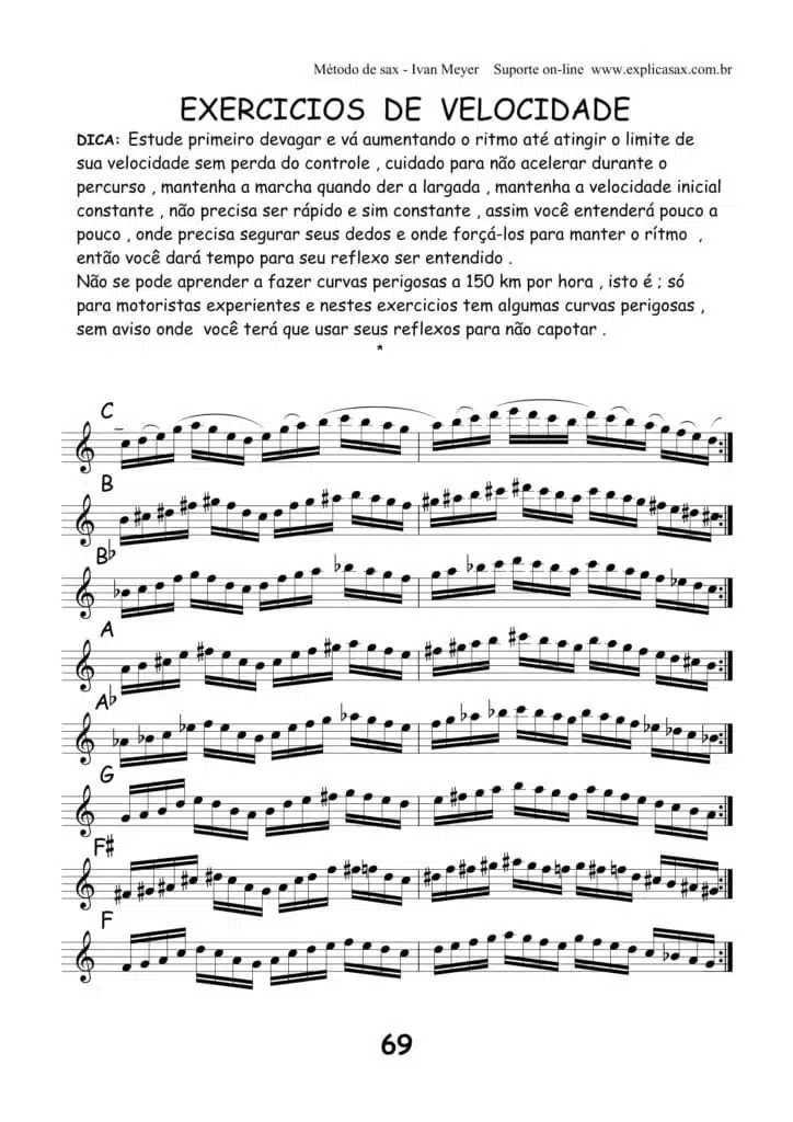 Exercícios para seu desenvolvimento técnico, agilidade e controle no sax, como para deixar dedos rápidos e equilibrados e desenvolvimento da coordenação motora no instrumento;